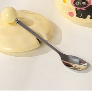 【普通のカップセット】かわいい小さな黒猫(カップ・蓋・スプーン)