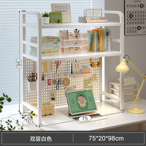 【金属フック3個無料】白二層有孔ボード収納ラック-75CM