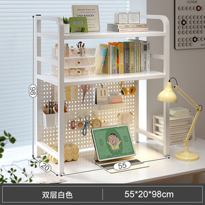 【金属フック3個無料】白二層有孔ボード収納ラック-55CM