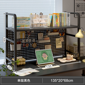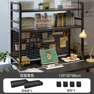 【金属フック3個無料】黒二層有孔ボード収納ラック-135CM