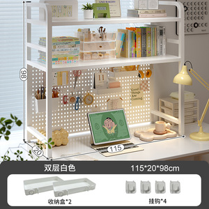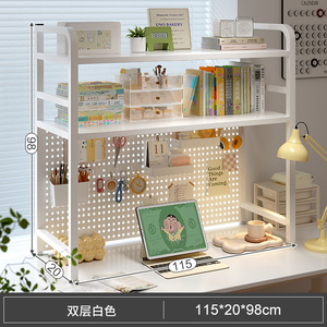 【金属フック3個無料】白二層有孔ボード収納ラック-115CM