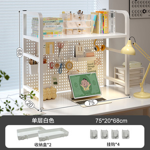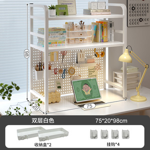 [付属品 - 吊り下げボックス2個+フック4個+金属フック3個]白二層有孔ボード収納ラック-75CM