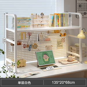 【金属フック3個無料】白二層有孔ボード収納ラック-135CM