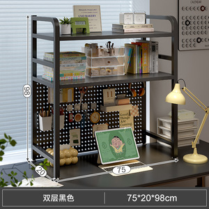 【金属フック3個無料】黒二層有孔ボード収納ラック-75CM