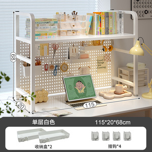 [付属品 - 吊り下げボックス2個+フック4個+金属フック3個]白二層有孔ボード収納ラック-115CM