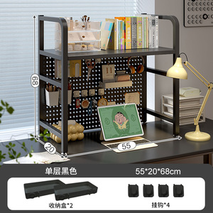 [付属品 - 吊り下げボックス2個 + フック4個 + 金属フック3個] 黒単層有孔ボード収納ラック - 55CM