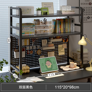 【金属フック3個無料】黒二層有孔ボード収納ラック-115CM