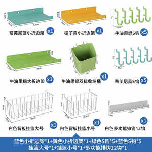 [付属品 - 吊り下げボックス2個+フック4個+金属フック3個]白二層有孔ボード収納ラック-55CM