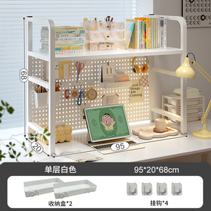 [付属品 - 吊り下げボックス2個+フック4個+金属フック3個]白二層有孔ボード収納ラック-95CM