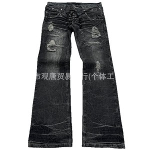 クロスボーダー速売通の人気モデルゴシック復古マイクロラッパ水洗いは古い穴を割った腰のデニムのズボンinsを作ります。