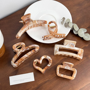 高級感のある大理石模様の大型ヘアクリップ、PC素材の落下防止ヘアピン、後頭部の髪をまとめるためのファッショナブルなシャーククリップヘアアクセサリー