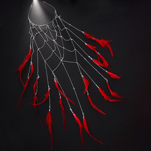 国境を越えた売れ筋タッセルラインストーンフェザーヘアチェーンヘアアクセサリーファッション中空グリッドラインストーンヘアフープ女性のヘアチェーン