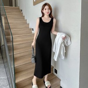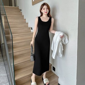 女性のための黒のハイエンドノースリーブベストドレス 2025 春夏ハイウエストスリムサスペンダードレスとボトリングロングスカート