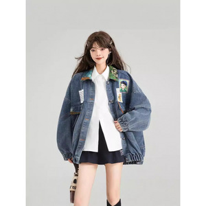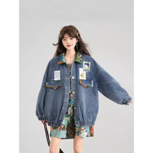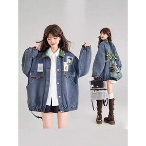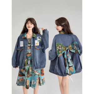 レトロデニムジャケット女性のための 2024 春と秋フレンチアートジャカードリボン装飾ルーズジャケットトップトレンディ