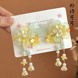 超仙手作 ~ 中国式古風瑠璃流蘇児童ヘアピン髪飾り対クリップヘアアクセサリー