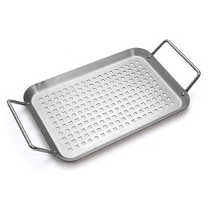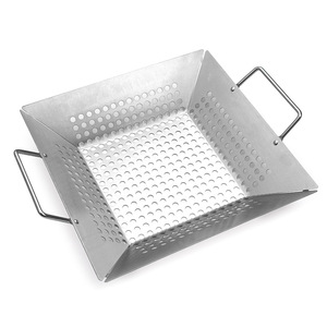 Amazon スクエア厚みのあるステンレス鋼多孔質バーベキュープレートアウトドアツールバーベキューバーベキュー野菜グリルバスケット 4 点セット