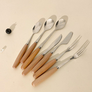 国境を越えた日本式ステンレスステーキナイフフォークスプーン創意木柄スイーツスプーン小叉果物フォーク洋食食器