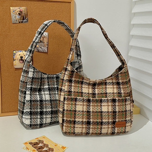 大容量バッグ レディース クロスボーダー 韓国風 チェック柄 レトロ 脇下 学生 ショルダーバッグ 通勤 トートバッグ 通勤 多用途