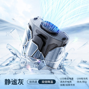 Y19 デュアルエアアウトレット デジタル表示 ウエストファン *グレー*5000mAh [199スピードの高速冷風]