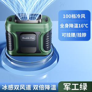 Y5 ダブルエアアウトレットウエストファン *グリーン*6000mAh [無料ストラップ]