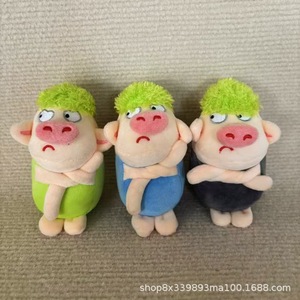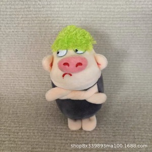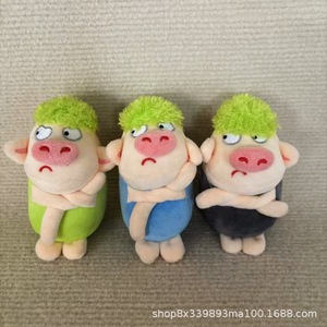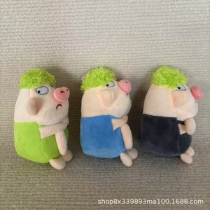 かわいいプルーペッググリーンヘア怒っている豚ぬいぐるみ人形バッグペンダント男性と女性の誕生日プレゼント面白いキー