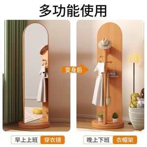 回転服装鏡全身床置き鏡家庭用寝室に帽子掛け鏡一体試着鏡縦型移動可能