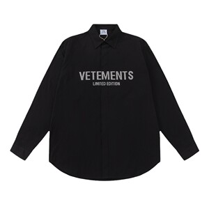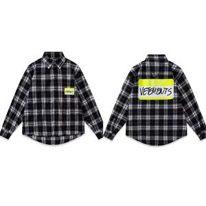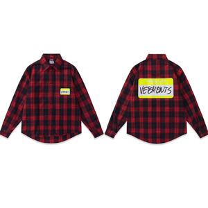 クロスボーダーアメリカのトレンドブランドVTMレタープリント刺繍ポケットシャツルーズカジュアル男女カップル長袖シャツ