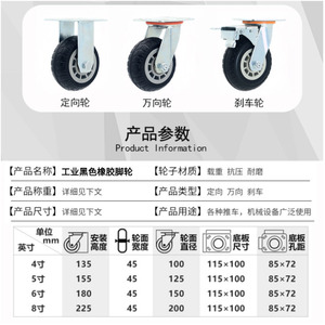 6inch 頑丈な黒ゴム製ユニバーサル ホイール ユニバーサル スタイル