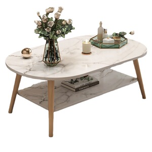 【椭圆形双层】白大理石纹色+黑腿100*50*42cm