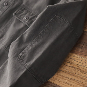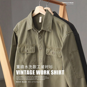 加厚水洗做旧重磅工装衬衫男春秋季美式复古宽松翻领长袖衬衣外套
