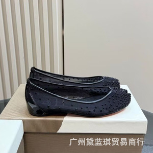 ピッグトゥシューズ 2025春秋新作 小柄な人向け インナー高さメッシュ ホットダイヤモンド 牛漆革 フラットシューズ