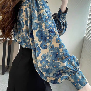 ライトラグジュアリーファッション2025春新デザインニッチ花柄トップス気質シャツスリムランタンスリーブシャツ女性用