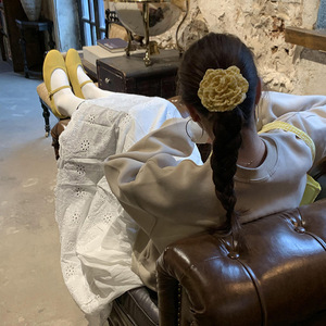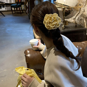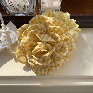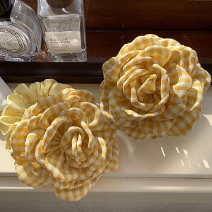絶妙な黄色のチェック柄の花のヘアクリップ、シンプルなヘアクリップ、ハイエンドのサメクリップ、気質、韓国の甘いヘアクリップ、女性用のヘッドバンド