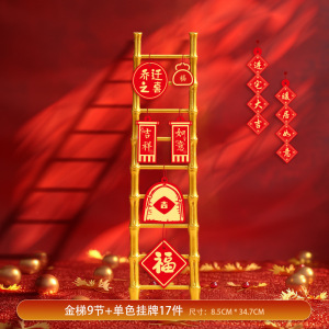 喬迁の喜装飾は新しい家を引っ越して仲間の竹のはしごに入ります。