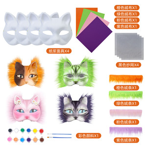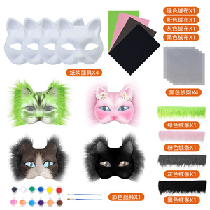 国境を越えた売れ筋 DIY ブランクペイント猫の顔セット cos 猫マスク毛付き子供用手描きプロムパーティー