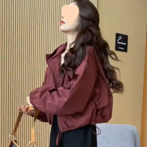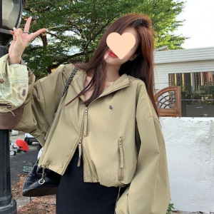 ジャケット裏地ショート 2025 ジャケット春と秋の新しいスタイルの小さなカジュアルジャケット女性のフード付きトップ
