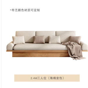 寂スタイルの実木ソファ日本式原木風三人位ソファ現代シンプル北欧収納ソファセット