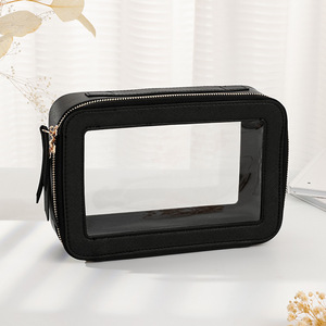 国境を越えた乾湿分離ポータブルレザートイレタリーバッグポータブル大容量二層透明PVCジッパー化粧品バッグ