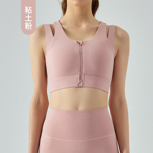 高強度フロントジッパースポーツブラオールインワン固定カップヨガブラランニング通気性耐衝撃フィットネスベスト