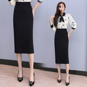 女性のためのプロフェッショナルウェア夏服、伸縮性ウエストバッグヒップスカート、女性のための多用途なバックスリットスカート