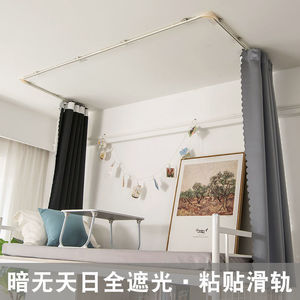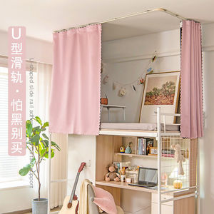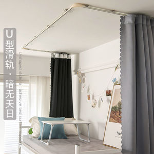 トップスライドベッドカーテン学生寮二段ベッド強力遮光大学寮ベッドカーテン天井貼り付けU字レール新品