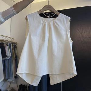 2025 小さな新鮮な女性の韓国スタイルラウンドネックプリーツバックスリットノースリーブベスト無地シャツ