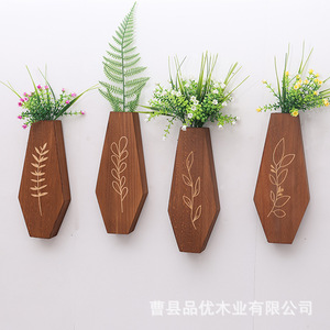 木製壁掛け花瓶棚 リビング装飾 ドライフラワー 花瓶入れ 吊り下げグリーンフラワーボトルスタンド飾り