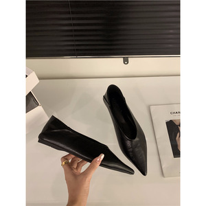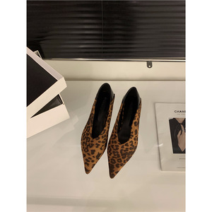 平底レトロポインテッドトゥヒョウ柄シングルシューズ婦人靴2025春秋フレンチソフトソール足が疲れにくい黒通勤靴