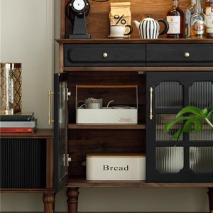法式实木餐边柜 家用客厅靠墙酒柜一体吧台柜餐厅中古风储物橱柜
