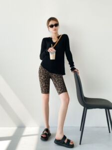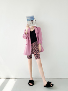 夏の新ヒョウ柄サメパンツ女性の 5 点通気性レギンスヒップリフティング腹部サイクリングパンツ