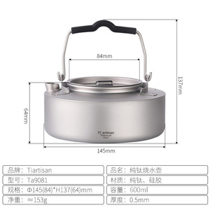 チタン職人屋外純チタン湯たんぽポータブルキャンプ泡ティーポットキャンプ茶道具チタン合金煮水煮茶BH