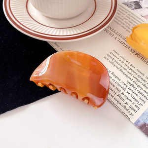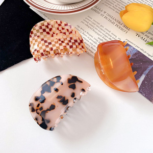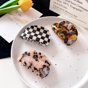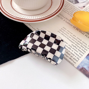韩版时尚棋盘格半圆醋酸抓夹高级感小众后脑勺盘发鲨鱼夹发卡头饰
