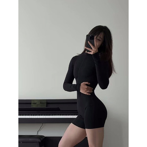 フィットネス服春と秋のワンピース長袖 Tシャツ女性のアメリカンヨガ服女性スリムホットガールカジュアルスポーツジッパートレーニング