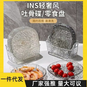 ライト高級氷河パターン家庭用骨吐き皿テーブルゴミ皿インターネット有名人透明デスクトップ骨吐き皿小皿セット